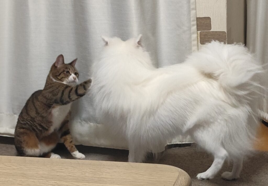 しかも実家の犬と混ざり暮らせてます!女王のように犬が入っちゃダメエリアにもズカズカ入ってのびのびしてます😊