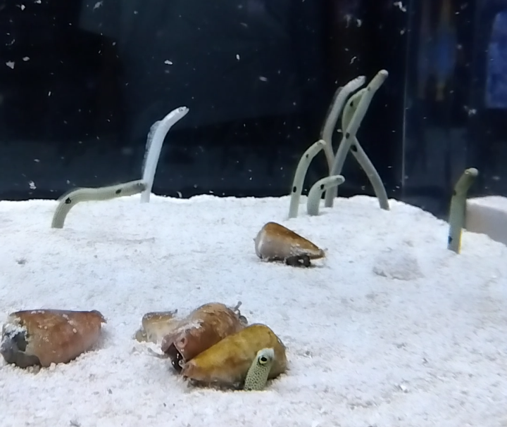 ごはんが食べたいのに貝(?)が邪魔で出られないチンアナゴもいました🤣