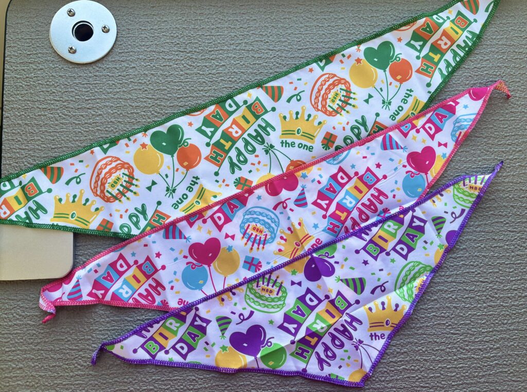 トリミングに来てくれた子に、バンダナやチョーカーを着けてお返しをするのですが、お誕生日当日に来てくれた子やお誕生日が近い子に着けています🎂🎉
